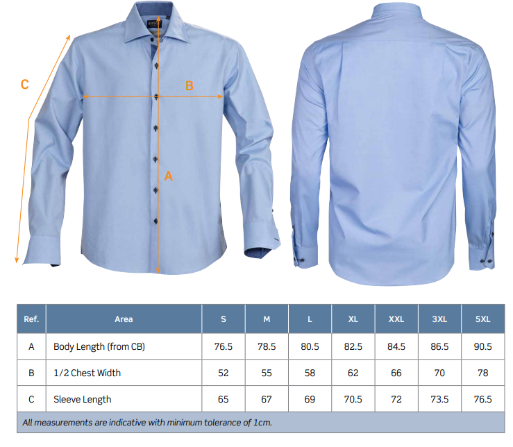 Contrast fabric at cuffs, placket and inside collar.