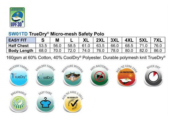 Conforms to AS/NZS 4602.1:2011 Class D day use safety wear with UV rated. Contrast collar with two stripes. Contrast lower front garment & collar.